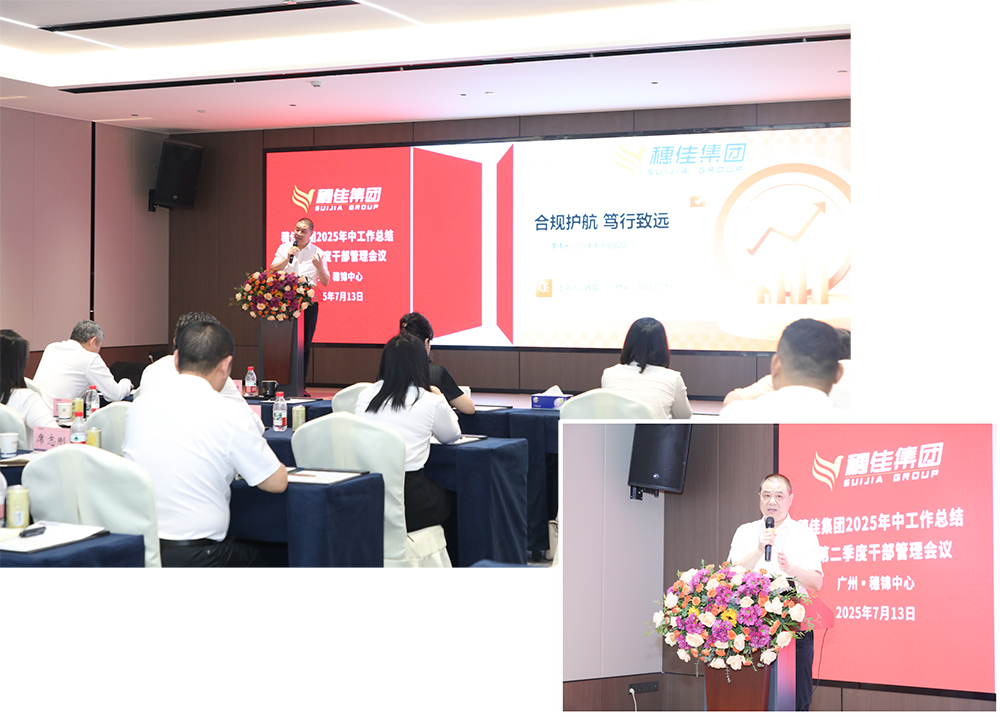 2025年7月13日,穗佳集團(tuán)在穗錦中心三樓會議室召開2025年度年中工作總結(jié)暨第二季度干部管理會議。集團(tuán)董事長錢猛、副總裁邵玉珍、梅明喜等決策層,及總部職能部門、各業(yè)務(wù)板塊干部代表參會,圍繞“合規(guī)護(hù)航 篤行致遠(yuǎn)”主題,復(fù)盤上半年業(yè)績、部署下半年工作,并開展合規(guī)管理與國家戰(zhàn)略對接專題培訓(xùn)。