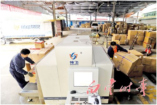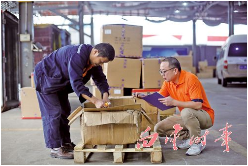穗佳物流工作人員對(duì)貨運(yùn)物件進(jìn)行開箱檢驗(yàn)石建華/攝